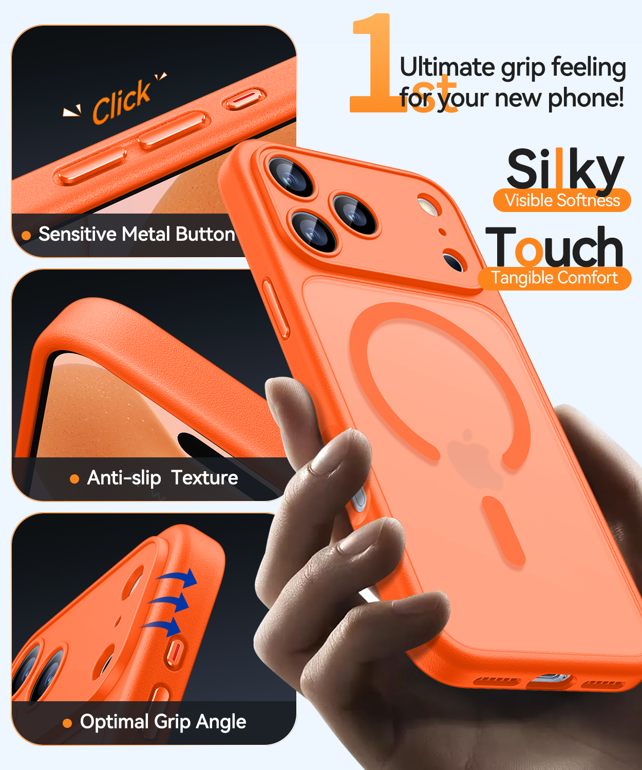 CANSHN Magnetic Compatible with iPhone 17 Pro Max Case, Upgraded [Full Camera Protection] [Compatible with Magsafe] [Translucent Matte] Shockproof Protective Phone Cover 6.9 Inch – Orange