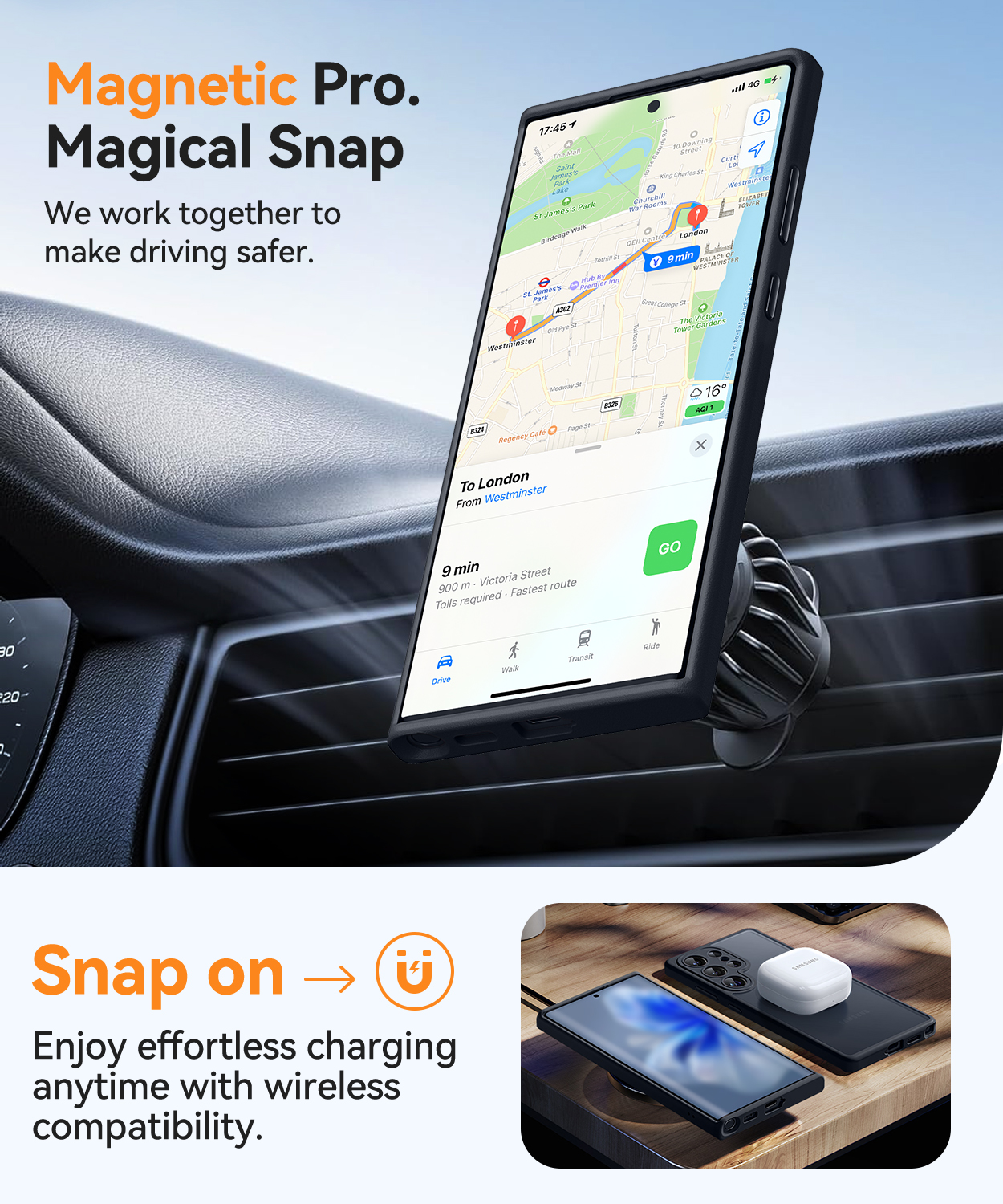 - Powerful Magnetic Attraction: compatible with MagSafe and Qi wireless chargers. It securely connects to magnetic accessories like wallets, power banks, and car mounts for a stable connection during rotation or movement